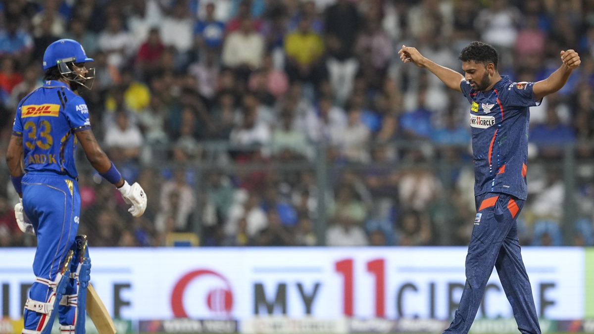 13 പന്തില് ഓരോ സിക്സും ഫോറും ഉള്പ്പെടെ 16 റണ്സ് നേടിയ ഹാര്ദിക്കിനെ മൊഹ്സിന് ഖാന് മടക്കിയയച്ചു. നിഹാല് വദേരക്കും (1) രക്ഷകനാവാനായില്ല. ബിഷ്നോയിയാണ് നിഹാലിനെ പുറത്താക്കിയത്. ഇഷാന് കിഷന് (14) നവീന് മുന്നില് ക്ലീന്ബൗള്ഡായി. ഒരുവശത്ത് നമാന് ധിര് 28 പന്തില് 4 ഫോറും 5 സിക്സും ഉള്പ്പെടെ 62 റണ്സോടെ പുറത്താവാതെ നിന്നെങ്കിലും ടീമിനെ വിജയത്തിലേക്കെത്തിക്കാനായില്ല.