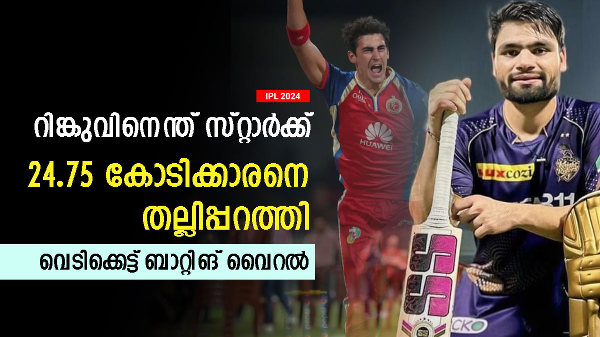 കെകെആറിന്റെ ഇത്തവണത്തെ തുറുപ്പുചീട്ട് ഓസീസ് സൂപ്പര് പേസര് മിച്ചല് സ്റ്റാര്ക്കാണ്. 24.75 കോടിക്ക് കെകെആര് ടീമിലെത്തിച്ച സ്റ്റാര്ക്കിന്റെ ഒരോവറില് രണ്ട് സിക്സര് ഉള്പ്പെടെ വെടിക്കെട്ട് പ്രകടനം നടത്തിയിരിക്കുകയാണ് റിങ്കു സിങ്. 16 റണ്സാണ് സ്റ്റാര്ക്കിന്റെ ഒരോവറില് റിങ്കു നേടിയത്. യോര്ക്കറിന് ശ്രമിച്ച സ്റ്റാര്ക്കിന് പിഴച്ചപ്പോള് രണ്ട് വമ്പന് സിക്സുകള് റിങ്കു പറത്തി. സ്റ്റാര്ക്കിന്റെ യോര്ക്കറുകളെപ്പോലും അനായാസമായി നേരിടാന് റിങ്കുവിനായി.