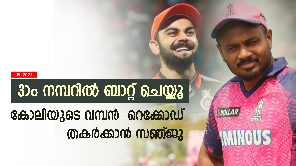 മൂന്നാം നമ്പറില് 93 ഇന്നിങ്സ് ബാറ്റുചെയ്ത് 2815 റണ്സാണ് കോലി നേടിയത്. മിക്ക മത്സരങ്ങളിലും ആര്സിബിയുടെ ഓപ്പണര് റോളിലാണ് കോലി കളിച്ചിട്ടുള്ളത്. മൂന്നാം നമ്പറില് കളിച്ചപ്പോഴും ഓപ്പണറായി കളിച്ചപ്പോഴും മികച്ച പ്രകടനം നടത്താന് കോലിക്കായിരുന്നു. ഈ സീസണിലും കോലി ഫഫ് ഡുപ്ലെസിസിനൊപ്പം ഓപ്പണറായി കളിക്കാനാണ് സാധ്യത. അതുകൊണ്ടുതന്നെ കോലിയെ മറികടക്കാനുള്ള അവസരം സഞ്ജുവിന് മുന്നിലുണ്ട്.