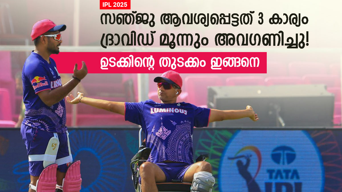 ഇത്തവണത്തെ രാജസ്ഥാന്റെ പിന്നോട്ട് പോക്കിന്റെ പ്രധാന കാരണം ടീമിന്റെ മെഗാ ലേലത്തിലെ മണ്ടന് പദ്ധതികളും ദ്രാവിഡും സഞ്ജുവും തമ്മിലുള്ള അഭിപ്രായ ഭിന്നതയുമാണ്. നിലവില് സഞ്ജുവും ദ്രാവിഡും തമ്മില് അത്ര നല്ല ബന്ധത്തിലല്ലെന്നാണ് സമീപകാല സംഭവങ്ങള് വ്യക്തമാക്കുന്നത്. സഞ്ജുവിനെ രാജസ്ഥാനിലേക്ക് കൊണ്ടുവന്നത് ദ്രാവിഡാണ്. എന്നിട്ടും ഇരുവരും തമ്മിലുള്ള ബന്ധം ഇപ്പോള് മോശമാവാനുള്ള കാരണം എന്താണ്?. പരിശോധിക്കാം.