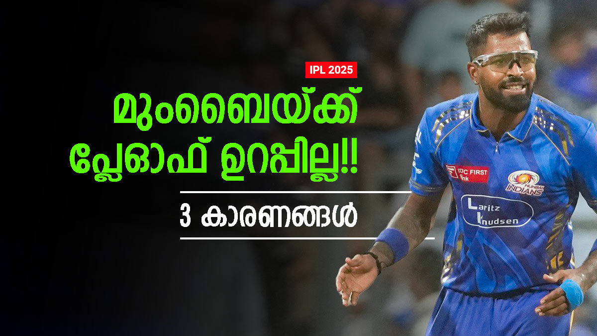 രണ്ടു കളികള് ബാക്കിനില്ക്കെ മുംബൈയ്ക്കു ഇപ്പോഴും പ്ലേഓഫ് ഉറപ്പില്ലെന്നതാണ് യാഥാര്ഥ്യം. അവസാന രണ്ടു കളിയും തോറ്റാല് അവര് കുഴപ്പത്തിലായേക്കും. നിലവില് മികച്ച ഫോമിലാണെങ്കിലും മുംബൈ ചിലപ്പോള് പ്ലേഓഫ് കാണാതെ പുറത്തായേക്കുകയും ചെയ്യും. ഇതിന്റെ കാരണങ്ങളറിയാം.