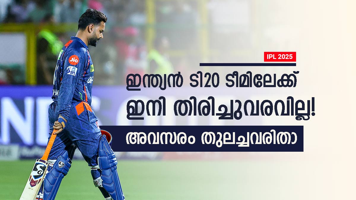 11 ശരാശരിയിലാണ് റിഷഭ് കളിക്കുന്നത്. സ്ട്രൈക്ക് റേറ്റും വളരെ മോശമാണ്. അതുകൊണ്ടുതന്നെ ഇന്ത്യയുടെ ടി20 ടീമിലേക്ക് പെട്ടെന്നൊരു തിരിച്ചുവരവ് റിഷഭ് പന്തിന് എളുപ്പമാവില്ലെന്നുറപ്പാണ്. ഗൗതം ഗംഭീര് ഫോം വിലയിരുത്തി ടീമില് അവസരം നല്കുന്ന പരിശീലകനാണ്. അതുകൊണ്ടുതന്നെ റിഷഭ് പന്തിനെ ടെസ്റ്റിലേക്ക് മാത്രമായി ഒതുക്കാനാണ് സാധ്യത.