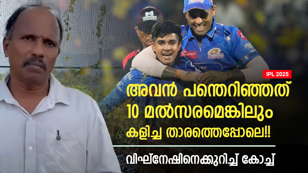 ലൂസ് ബോളുകളൊന്നും വിഘ്നേഷ് എറിഞ്ഞിട്ടില്ല. ആദ്യത്തെ 18 ബോളുകളും ലൂസ് ബോളുകളാിയിരുന്നില്ല. അതില് മൂന്നു വിക്കറ്റുകളുമെടുത്തു. ആദ്യത്തെ വിക്കറ്റ് റുതുരാജ് ഗെയ്ക്വാദിന്റെയായിരുന്നു. സിഎസ്കെയുടെ ക്യാപ്റ്റനും ബിഗ് ഹിറ്ററുമെല്ലാമായിട്ടും അതിന്റൈയൊന്നും പരിഭ്രമമില്ലാതെ വിഘ്നേഷ് ബൗള് ചെയ്തതെന്നും വിജയകുമാര് വ്യക്തമാക്കി.