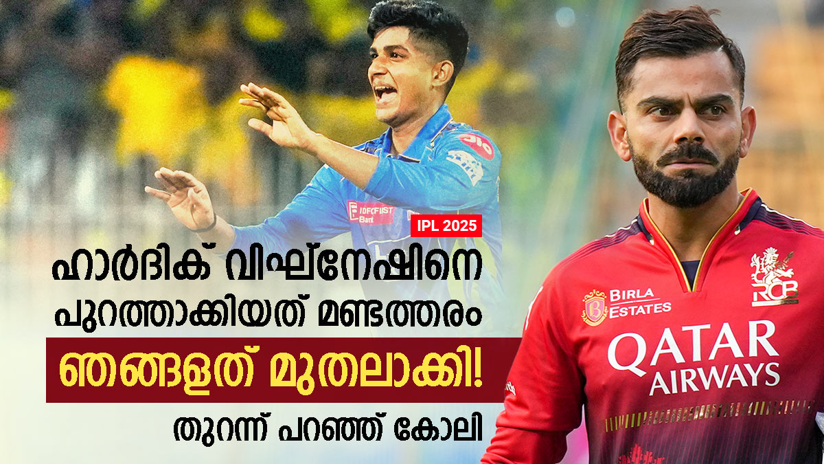 ഇതിലൊന്ന് വിഘ്നേഷ് പുത്തൂരിനെ ഉപയോഗിച്ചതിലെ പിഴവാണെന്ന് നിസംശയം പറയാം. ഒരോവര് പന്തെറിഞ്ഞ വിഘ്നേഷ് 10 റണ്സ് വിട്ടുകൊടുത്ത് ദേവ്ദത്ത് പടിക്കലിനെ പുറത്താക്കി. എന്നിട്ടും വിഘ്നേഷിനെ ഹാര്ദിക് തഴഞ്ഞു. 15ാം ഓവറില് വിഘ്നേഷിനെ പുറത്താക്കി ഇംപാക്ട് സബ്സ്റ്റിറ്റിയൂട്ടാക്കി രോഹിത് ശര്മയെ ഹാര്ദിക് കൊണ്ടുവന്നു. ഇത് മത്സരത്തില് വലിയ വഴിത്തിരിവും സൃഷ്ടിച്ചു. ആര്സിബി ഹീറോ വിരാട് കോലിയും ഇത് ചൂണ്ടിക്കാട്ടിയിരിക്കുകയാണ്.