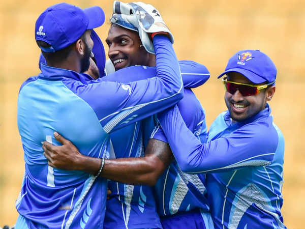 ക്യാപ്റ്റന് ദിനേഷ് കാര്ത്തിക് (11), മുരളി വിജയ് (0) എന്നിവര്ക്കു തിളങ്ങാനായില്ല. മൂന്നാമനായി ബാറ്റ് ചെയ്യാനെത്തിയ ആര് അശ്വിന് എട്ടു റണ്സിന് പുറത്താവുകയായിരുന്നു. 9.5 ഓവറില് 34 റണ്സ് മാത്രം വിട്ടുകൊടുത്താണ് മിഥുന് അഞ്ചു പേരെ പുറത്താക്കിയത്. വി കൗശിക്ക് രണ്ടു വിക്കറ്റെടുത്തു. ഈ മല്സരത്തിലെ ഹാട്രിക്കോടെ ചില നേട്ടങ്ങള്ക്കു മിഥുന് അവകാശിയായി. ടൂര്ണമെന്റിന്റെ ഫൈനലില് ഹാട്രിക് നേടിയ ആദ്യ താരമായി മാറിയ മിഥുന് ലിസ്റ്റ് എ ക്രിക്കറ്റില് കര്ണാടകയുടെ ആദ്യ ഹാട്രിക്ക് ഹീറോ കൂടിയാണ്.