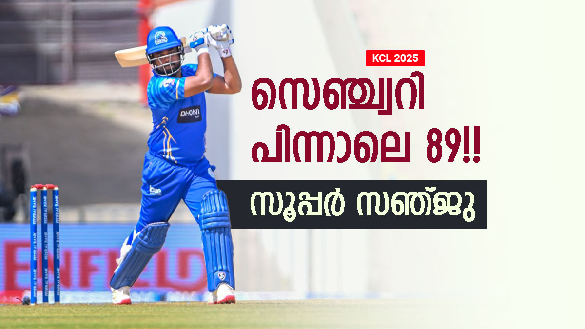 ഞായറാഴ്ച രാത്രി ഏരീസ് കൊല്ലം സെലിയേഴ്സിനെതിരേ കൊച്ചി റെക്കോര്ഡ് റണ്ചേസില് ജയിച്ചുകയറിയ കളിയില് 121 റണ്സോടെ അദ്ദേഹം ഹീറോയായിരുന്നു. അതിനു പിന്നാലെയാണ് തൊട്ടടുത്ത ദിവസം തന്നെ സഞ്ജു വീണ്ടുമൊരു സ്ഫോടനാത്മക ഇന്നിങ്സ് കളിച്ചിരിക്കുന്നത്.