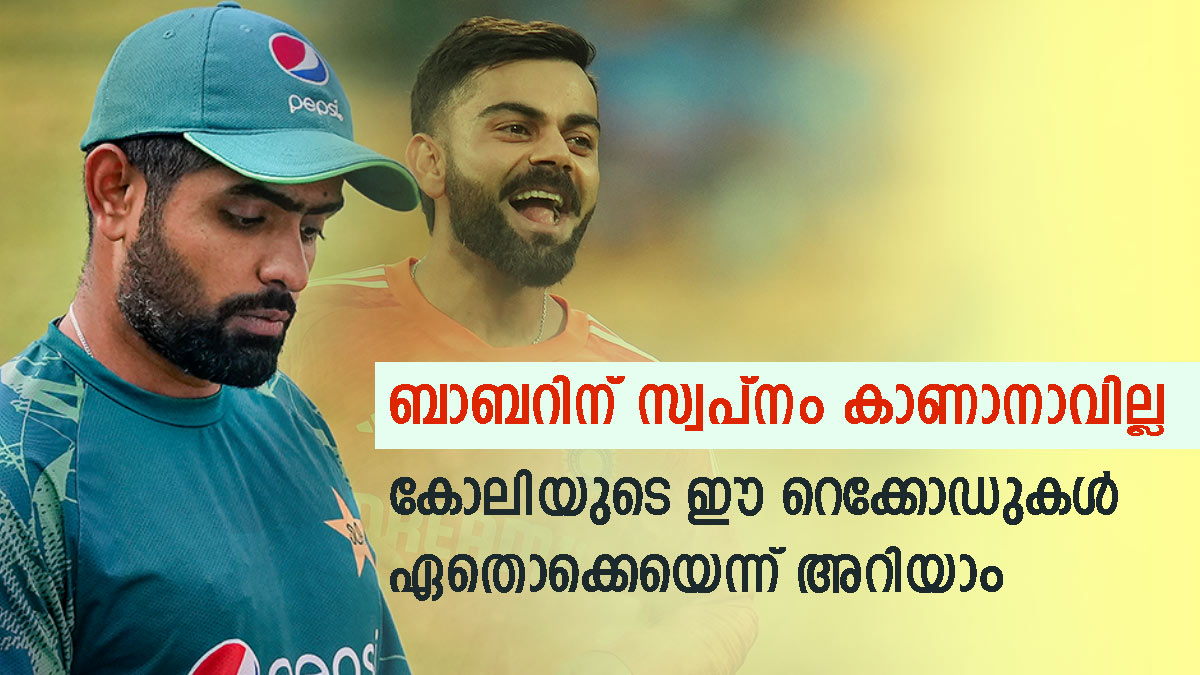 അവസാന ഏകദിന ലോകകപ്പോടെ പാകിസ്താന്റെ നായകസ്ഥാനത്ത് നിന്നും ബാബറെ നീക്കിയിരിക്കുകയാണ്. അന്താരാഷ്ട്ര ക്രിക്കറ്റില് ബാബറിന് എത്തിപ്പിടിക്കാന് സാധിക്കാത്ത കോലിയുടെ ചില റെക്കോഡുകളുണ്ട്. അത് എന്തൊക്കെയാണെന്ന് പരിശോധിക്കാം. ഒന്നാമത്തെ റെക്കോഡ് ടെസ്റ്റ് ഡബിള് സെഞ്ച്വറിയാണ്. ഏഴ് ടെസ്റ്റ് ഇരട്ട സെഞ്ച്വറികളാണ് കോലിയുടെ പേരിലുള്ളത്. എന്നാല് ടെസ്റ്റില് ഇതുവരെ ഇരട്ട സെഞ്ച്വറി നേടാന് ബാബറിന് സാധിച്ചിട്ടില്ല.
