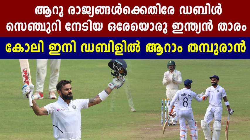 ടെസ്റ്റില് ആറു രാജ്യങ്ങള്ക്കെതിരേ ഡബിള് സെഞ്ച്വറി നേടിയ ലോകത്തിലെ മൂന്നാമത്തെ ക്രിക്കറ്ററെന്ന റെക്കോര്ഡിനൊപ്പമാണ് കോലിയെത്തിയത്. നിലവില് ശ്രീലങ്കയുടെ മുന് ഇതിഹാസ ബാറ്റ്സ്മാനും വിക്കറ്റ് കീപ്പറുമായ കുമാര് സങ്കക്കാര, പാകിസ്താന്റെ മുന് നായകന് യൂനിസ് ഖാന് എന്നിവര് മാത്രമേ ആറുപ വ്യത്യസ്ത ടീമുകള്ക്കെതിരേ ഡബിള് സെഞ്ച്വറി കണ്ടെത്തിയിട്ടുള്ളൂ.