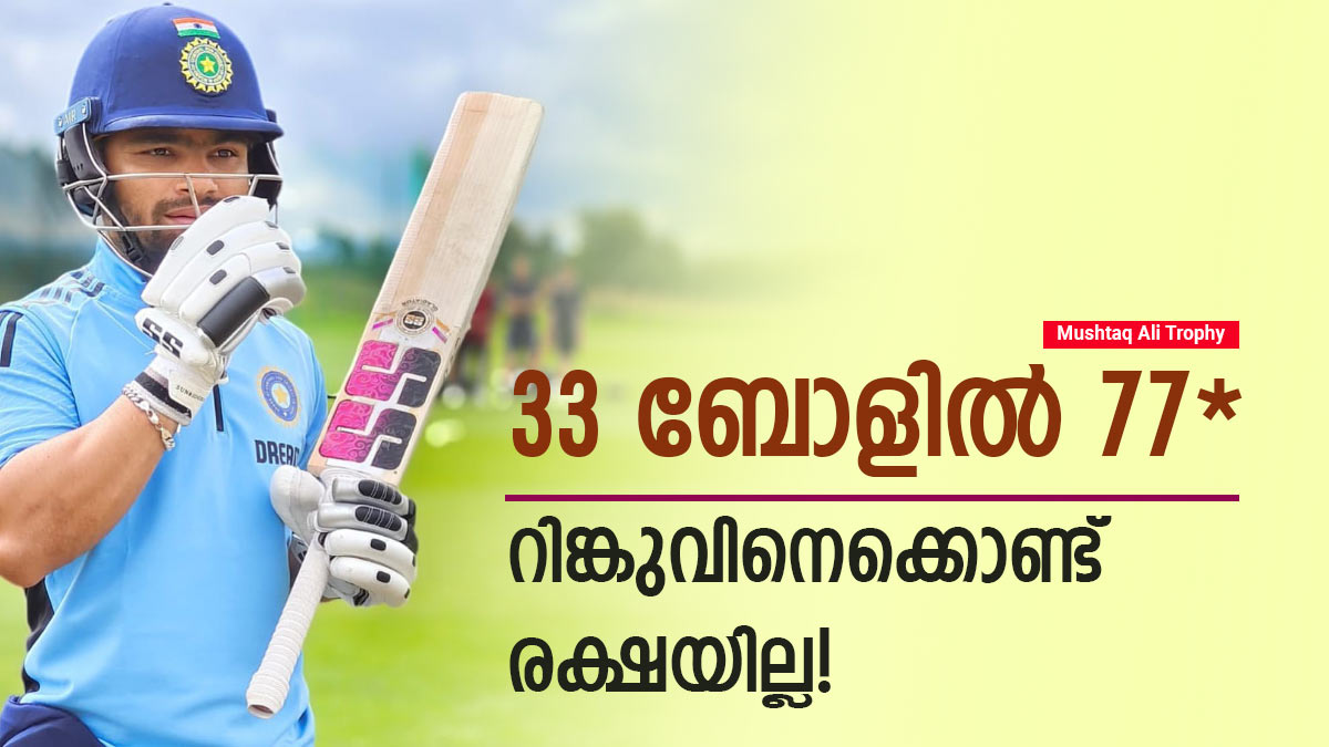 മുന് ഇതിഹാസ നായകനും വിക്കറ്റ് കീപ്പറുമായ എംഎസ് ധോണിക്കു ശേഷം ഇന്ത്യയുടെ സൂപ്പര് ഫിനിഷറാവാന് മറ്റൊരാളെ തിരയേണ്ടതില്ലെന്നു വീണ്ടും തെളിയിച്ചിരിക്കുകയാണ് യുവ താരം റിങ്കു സിങ്. സയ്ദ് മുഷ്താഖ് അലി ട്രോഫിയുടെ ക്വാര്ട്ടര് ഫൈനലില് പഞ്ചാബിനെതിരേയായിരുന്നു ഉത്തര് പ്രദേശിനു വേണ്ടി റിങ്കുവിന്റെ സൂപ്പര് ഫിനിഷിങ്. അഞ്ചാം നമ്പറില് ഇറങ്ങിയ ശേഷം അദ്ദേഹം ഇടിവെട്ട് ഇന്നിങ്സുമായി കത്തിക്കയറുകയായിരുന്നു. വെറും 33 ബോളില് പുറത്താവാതെ 77 റണ്സാണ് റിങ്കു വാരിക്കൂട്ടിയത്. ആറു വമ്പന് സിക്സറും നാലു ഫോറുകളുമടക്കമായിരുന്ന ഇത്.