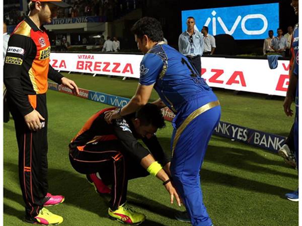 ഹൈദരാബാദ് - മുംബൈ മത്സരത്തിന് ശേഷം യുവരാജ് സിംഗ് സച്ചിന്റെ കാലില് തൊട്ടപ്പോള്