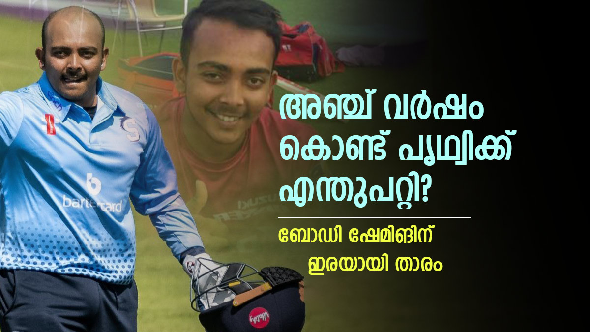 കൗണ്ടിയില് ഡബിള് സെഞ്ച്വറിയടിച്ച ആദ്യത്തെ ഇന്ത്യന് താരമെന്ന റെക്കോര്ഡ് കുറിച്ചിട്ടും നാട്ടുകാരില് നിന്നും പൃഥ്വിക്കു നേരിടേണ്ടി വന്നത് പരിഹാസവും പുച്ഛവും മാത്രമായിരുന്നു. സോഷ്യല് മീഡിയയില് വലിയ രീതിയില് ബോഡി ഷേമിങിനു പൃഥ്വി ഇരയായിരുന്നു. താരത്തിന്റെ തടിച്ച ശരീര പ്രകൃതത്തെയും കഷണ്ടിയെയുമെല്ലാം പരിഹസിച്ച പലരും ബാറ്റിങ് പ്രകടനത്തെക്കുറിച്ച് ഒന്നു പരാമര്ശിക്കാന് പോലും തയ്യാറായില്ല.
