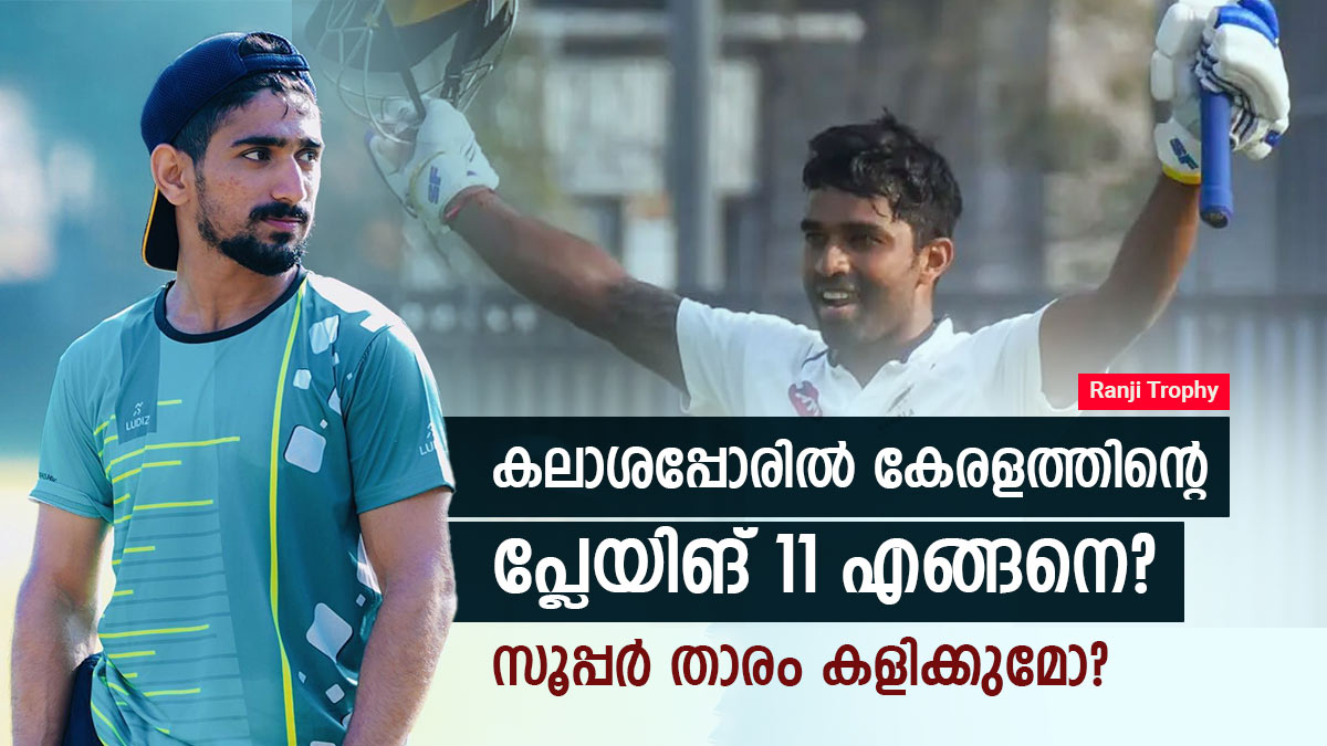 ഫൈനലില് വിദര്ഭക്കെതിരേ കേരളത്തിന്റെ പ്ലേയിങ് 11 എങ്ങനെയാവും?. സെമിയില് ഹെല്മറ്റുകൊണ്ട് കേരളത്തിന്റെ വിജയമൊരുക്കുന്നതിനിടെ പരിക്കേറ്റ സല്മാന് നിസാറിന്റെ കാര്യത്തിലാണ് എല്ലാവര്ക്കും ആശങ്ക. കേരളത്തിന്റെ കലാശപ്പോരിലെ സാധ്യതാ 11 അറിയാം.