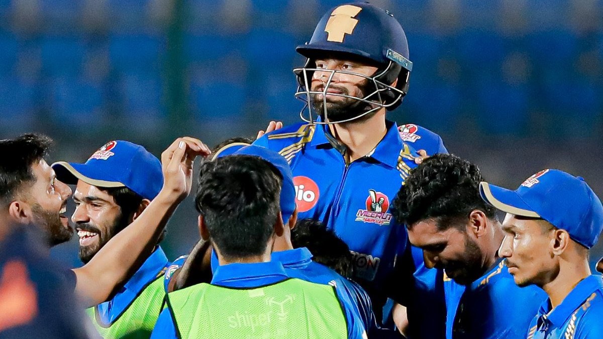 മറുപടിയില് മൂന്നാം നമ്പറില് കളിച്ച മാധവ് കൗശിക്കിന്റെ (87*) തകര്പ്പന് ഇന്നിങ്സിന്റെ മികവില് മീററ്റിനു നിശ്ചിത ഓവറില് നാലു വിക്കറ്റിനു നേടാനായത് 181 റണ്സാണ്. 52 ബോളില് കൗശിക്ക് ഒമ്പതു ഫോറും രണ്ടു സിക്സറുമടിച്ചു. റിങ്കു നാലാം നമ്പറിലാണ് കളിച്ചത്. 22 ബോളില് ഒരു സിക്സറടക്കം 15 റണ്സ് നേടി താരം പുറത്താവുകയും ചെയ്തു. കളി ടൈ ആയതോടെ വിജയികളെ കണ്ടെത്താന് സൂപ്പര് ഓവര് വേണ്ടി വരികയായിരുന്നു.