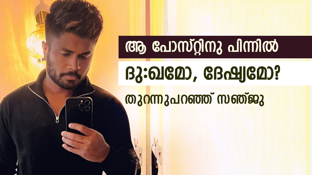 അന്നു അങ്ങനെയൊരു പോസ്റ്റ് ഇട്ടതിനു പിന്നില് സങ്കടമോ, ദേഷ്യമോ ഒന്നുമായിരുന്നില്ലെന്നാണ് സഞ്ജു പറയുന്നത്. സങ്കടം കാരണമല്ല അന്നു അങ്ങനെ പ്രതികരിച്ചത്. സാധാരണയായി ഞാന് ഒട്ടും തന്നെ പ്രതികരിക്കാറില്ല. ഇറ്റ് ഈസ് വാട്ട് ഇറ്റ് ഈസ് എന്നൊരു ക്യാപ്ഷനായിരുന്നു ഞാന് നല്കിയത്.
