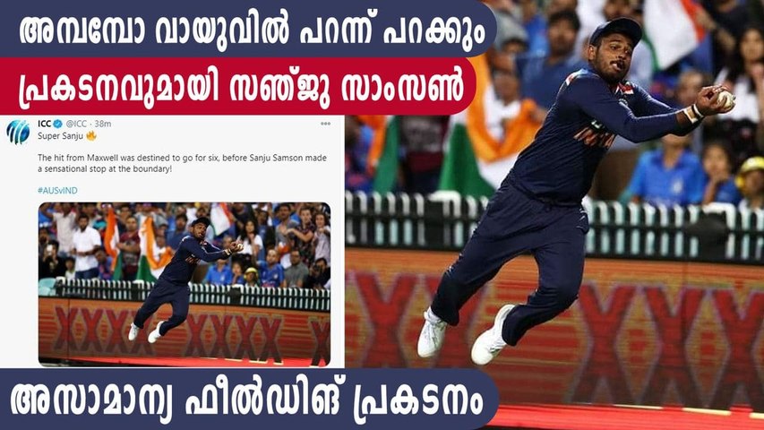 സിഡ്നി: യുഎഇയില് നടന്ന കഴിഞ്ഞ ഐപിഎല്ലില് കിങ്സ് ഇലവന് പഞ്ചാബിന്റെ വെസ്റ്റ് ഇന്ഡീസ് താരം നിക്കോളാസ് പൂരന്റെ വണ്ടര് ക്യാച്ച് ക്രിക്കറ്റ് പ്രേമികള് മറന്നുകാണില്ല. ഉറപ്പായും സിക്സര് ആവേണ്ടിയിരുന്ന ഷോട്ട് ബൗണ്ടറി ലൈനിന് പുറത്തുവച്ച് ഡൈവ് ചെയ്ത് പിടിയിലൊതുക്കിയ ശേഷം തേരം ഗ്രൗണ്ടിലേക്കു തിരികെയിടുകയായിരുന്നു. ഈ സേവുമായി സാമ്യമുള്ള ഒരു അദ്ഭുത സേവ് നടത്തിയിരിക്കുകയാണ് ഇന്ത്യയുടെ മലയാളി താരം സഞ്ജു സാംസണ്. ഓസ്ട്രേലിയക്കെതിരായ മൂന്നാമത്തെയും അവസാനത്തെയും ടി20യിലായിരുന്നു ഇത്.