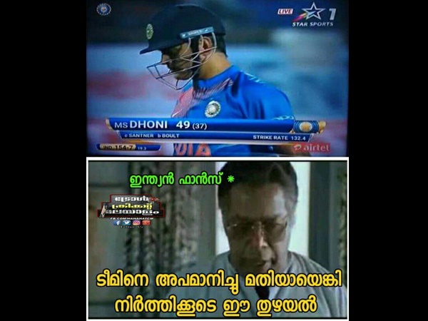 ഇന്ത്യ തോൽക്കാൻ കാരണം ധോണി ആണ് എന്ന പോസ്റ്റ് വല്ലതും വന്നോ