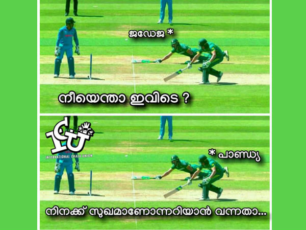 ജഡേജ തക്കസമയത്ത് പാണ്ഡ്യയെ റണ്ണൗട്ടാക്കിയത് നന്നായി. ഇല്ലേൽ കോലി ഒറ്റപ്പെട്ടുപോയേനെ