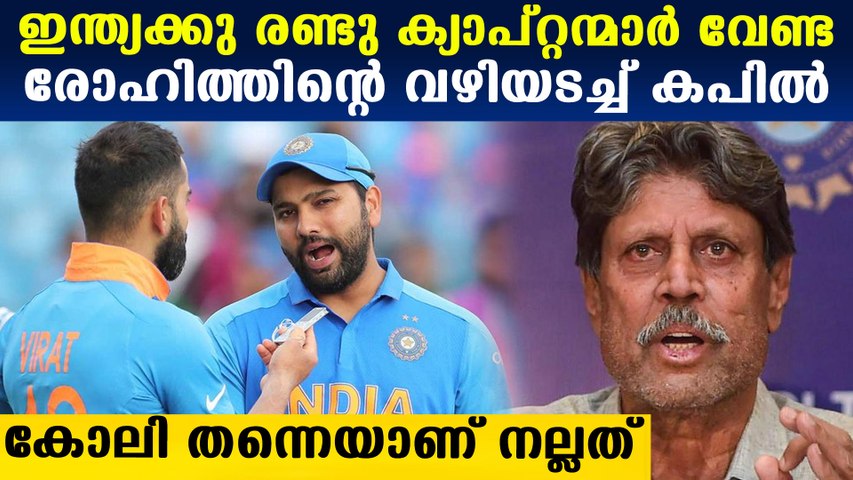 എന്നാല് ഇന്ത്യന് ക്രിക്കറ്റ് ടീമിനെ രണ്ടു ക്യാപ്റ്റന്മാര് നയിക്കുന്നതിനോടു താന് യോജിക്കുന്നില്ലെന്നും നമ്മുടെ സംസ്കാരം നോക്കുമ്പോള് അതു വിജയിക്കില്ലെന്നും കപില് ചൂണ്ടിക്കാട്ടി. ഒരു ടീമിന് വ്യത്യസ്ത ക്യാപ്റ്റന്മാരെന്നത് നമ്മുടെ സംസ്കാരത്തില് സംഭവിക്കാന് പോവുന്നില്ല. ഒരു കമ്പനിയുടെ സിഇഒയായി നിങ്ങള്ക്കു രണ്ടു പേരെ നിയമിക്കാന് കഴിയില്ല. അതുപോലെ തന്നെയാണ് ടീമിന്റെയും കാര്യം. കോലി ടി20യില് തുടര്ന്നും കളിക്കുന്നുണ്ടെങ്കില് അദ്ദേഹം തന്നെ ക്യാപ്റ്റനായും തുടരണം. ക്യാപ്റ്റന്സിയിലേക്കു പുതിയ താരങ്ങള് വരുന്നത് കാണാന് തനിക്കു ആഗ്രഹമുണ്ട്. പക്ഷെ അതു ബുദ്ധിമുട്ടാണെന്നും കപില് വിശദമാക്കി.