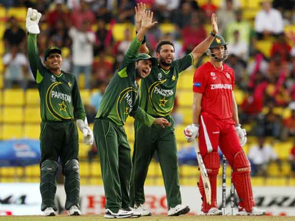 സിംബാബ്വെയുടെ തുടക്കം വന്തകര്ച്ചയോടെയായിരുന്നു. 43 റണ്സെടുക്കുന്നതിനിടെ നാലു മുന്നിര ബാറ്റ്സ്മാന്മാരെയാണ് അവര്ക്കു നഷ്ടമായത്. മധ്യനിരയില് എര്വിനും(52) ചിഗുംബുരയും(32) ചേര്ന്ന് പോരാടാന് ശ്രമിച്ചുവെങ്കിലും ഉമര്ഗുള്ളിന്റെയും അബ്ദുള് റസാഖിന്റെയും ബൗളിംഗിനുമുന്നില് വന് സ്കോര് കണ്ടെത്താനായില്ല. പാക് ബൗളിങിനൊപ്പം മഴയും സിംബാവെ ബാറ്റ്സ്മാന്മാരെ വിഷമിപ്പിച്ചു.