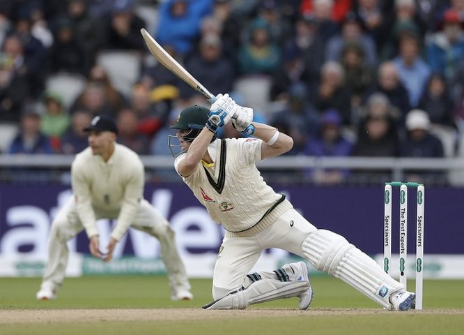 നാലാം ടെസ്റ്റിന്റെ രണ്ടാമിന്നിങ്സാണ് സ്മിത്തിന്റെ കണ്ണഞ്ചിപ്പിക്കുന്ന ഷോട്ട് കണ്ടത്. കളിയില് സ്മിത്ത് 92 പന്തില് 82 റണ്സെടുത്തിരുന്നു. കളിക്കിടെ ഒരു ഷോട്ട് കളിച്ച ശേഷം അതേ പൊസിഷനില് സ്മിത്ത് പിച്ചില് കിടക്കുന്നതാണ് ചിത്രം. നിയന്ത്രണം വിട്ട് ഗ്രൗണ്ടില് വീണിട്ടും താരം നടത്തിയ ആത്മസമര്പ്പണമാണ് ഏവരെയും ഞെട്ടിച്ചത്. സ്മിത്തിന്റെ ടെക്സ്റ്റ് ബുക്ക് ഷോട്ടിന്റെ ചിത്രം ഐസിസി തന്നെയാണ് തങ്ങളുടെ ഒഫീഷ്യല് ട്വിറ്റര് പേജിലൂടെ പുറത്തുവിട്ടത്.