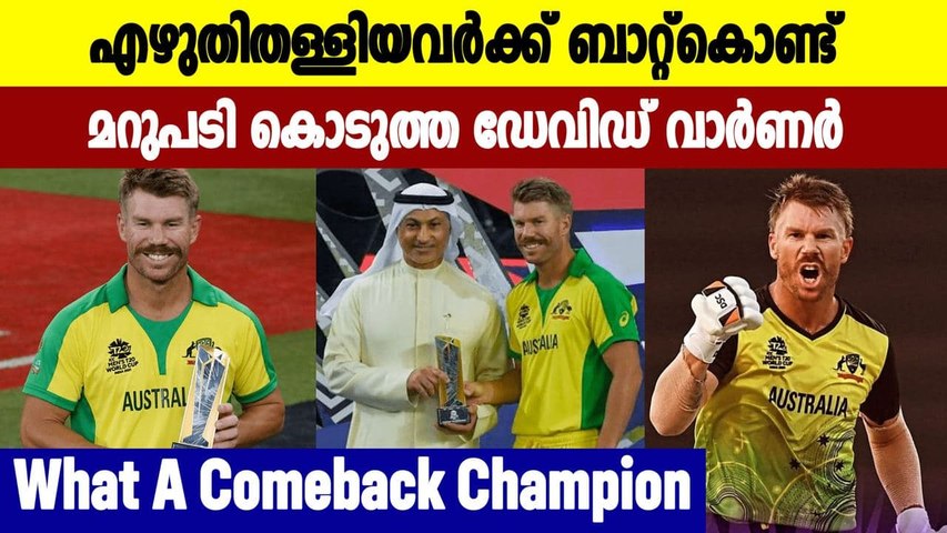 ടൂര്ണമെന്റ് തുടങ്ങുമ്പോള് മോശം ഫോമിലായിരുന്ന ഡേവിഡ് വാര്ണര് ഗംഭീര തിരിച്ചുവരവാണ് ഓസീസ് ജഴ്സിയില് നടത്തിയത്. ആറ് മത്സരത്തില് നിന്ന് 236 റണ്സാണ് വാര്ണര് നേടിയത്. ഇതില് മൂന്ന് അര്ധ സെഞ്ച്വറിയും ഉള്പ്പെടും. റണ്വേട്ടക്കാരില് രണ്ടാം സ്ഥാനത്തെത്തിയ വാര്ണറുടെ പ്രകടനം ഓസീസിന്റെ കിരീട നേട്ടത്തില് നിര്ണ്ണായകമായെന്ന് പറയാം. ഇപ്പോഴിതാ ഡേവിഡ് വാര്ണര് ടൂര്ണമെന്റിലെ താരമാകുമെന്ന് താന് നേരത്തെ പ്രവചിച്ചിരുന്നുവെന്ന് വെളിപ്പെടുത്തിയിരിക്കുകയാണ് ഓസീസ് നായകന് ആരോണ് ഫിഞ്ച്.