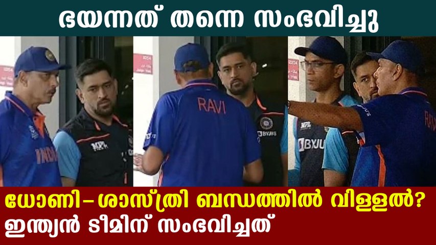ഇരുവരും തമ്മിലുള്ള സംഭാഷണത്തിന്റെ വീഡിയോ ദൃശ്യങ്ങളും ചിത്രങ്ങളും പുറത്തുവരുന്നുണ്ട്. ധോണി അല്പ്പം ദേഷ്യത്തോടെ രവി ശാസ്ത്രിയോട് സംസാരിക്കുന്ന രീതിയിലാണ് വീഡിയോയിലുള്ളത്. ഇത് രണ്ട് പേരും തമ്മില് അഭിപ്രായഭിന്നതയുണ്ടെന്ന് തന്നെയാണ് വ്യക്തമാക്കുന്നത്. ടൂര്ണമെന്റ് ആരംഭിക്കുന്നതിന് മുമ്പ് തന്നെ ഇക്കാര്യം പലരും ചൂണ്ടിക്കാട്ടിയിരുന്നു. ധോണിയുടെ തീരുമാനങ്ങളും രവി ശാസ്ത്രിയുടെ തീരുമാനങ്ങളും തമ്മില് ചേര്ന്ന് പോകുമോയെന്നതില് പലര്ക്കും സംശയമുണ്ടായിരുന്നു. ഇപ്പോള് അത് തന്നെ സംഭവിച്ചുവെന്നുവേണം കണക്കാക്കാന്.