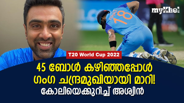 സൂപ്പര്ഹിറ്റ് സിനിമയായ മണിച്ചിത്രത്താഴിന്റെ തമിഴ് റീമേക്കായ ചന്ദ്രമുഖിയിലെ കഥാപാത്രത്തോടാണ് കോലിയുടെ ഇന്നിങ്സിനെ അശ്വിന് താരതമ്യം ചെയ്തത്. ആദ്യത്തെ 45 ബോളുകള് നേരിടുമ്പോള് കോലി ഗംഗയെപ്പോലെയായിരുന്നുവെന്നും പിന്നീട് ബാധ കയറിയ ചന്ദ്രമുഖിയായി തീര്ന്നുവെന്നും കളിയില് ഇന്ത്യയുടെ വിജയറണ്സ് കുറിച്ച അശ്വിന് തമാശരൂപേണ പറഞ്ഞു. അവസാന ബോളില് ജയിക്കാന് ഒരു റണ്സ് വേണമെന്നിരിക്കെ സിംഗിളിലൂടെ അദ്ദേഹം ടീമിനു എക്കാലവും ഓര്മിക്കാവുന്ന വിജയം സമ്മാനിക്കുകയായിരുന്നു.