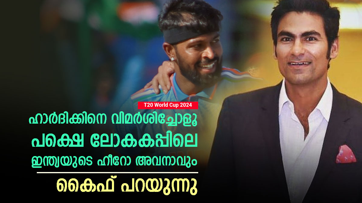 ബൗളിങ്ങില് ചെണ്ടയായി മാറുന്നു. ഹാര്ദിക്കിന്റെ ഫിറ്റ്നസിനെതിരേയും ചോദ്യം ഉയരുകയാണ്. എന്നാല് ഇന്ത്യയുടെ ലോകകപ്പ് ടീമില് വൈസ് ക്യാപ്റ്റനായാണ് ഹാര്ദിക് ഇടം നേടിയെടുത്തിരിക്കുന്നത്. വലിയ വിമര്ശനവും പരിഹാസവും ഹാര്ദിക്കിനെതിരേ ഉയരുന്നുണ്ട്. എന്നാല് ഹാര്ദിക്കിനെ ഇപ്പോള് വിമര്ശിക്കുന്നവരെല്ലാം കൈയടിക്കേണ്ടി വരുമെന്ന് മുന്നറിയിപ്പ് നല്കുകയാണ് മുന് ഇന്ത്യന് താരം മുഹമ്മദ് കൈഫ്. ലോകകപ്പില് ഹാര്ദിക്കാവും ഹീറോയെന്നാണ് കൈഫ് പറയുന്നത്.