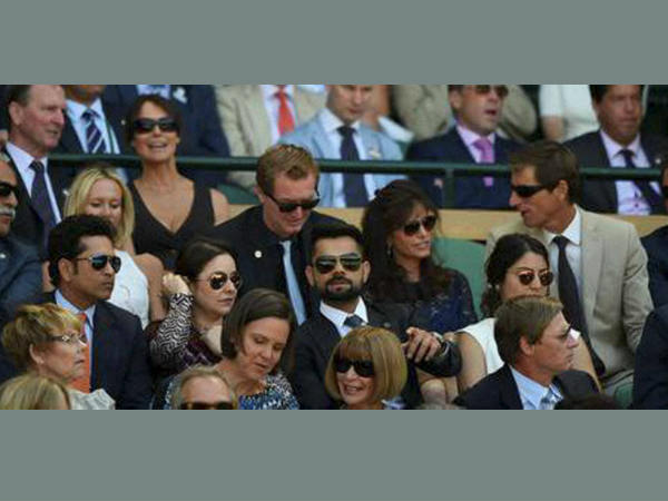 വിംബിള്ഡണ് സെമിഫൈനല് മത്സരം കാണാനെത്തിയ ക്രിക്കറ്റ് താരങ്ങളായ സച്ചിനും കോലിയും പങ്കാളികള്ക്കൊപ്പം.