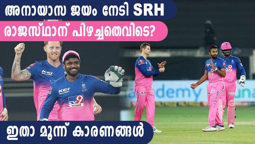 രാജസ്ഥാന് സ്വപ്നതുല്യമായ തുടക്കമാണ് ജോഫ്രാ ആര്ച്ചര് നേടിക്കൊടുത്തത്. ഡേവിഡ് വാര്ണര്,ജോണി ബെയര്സ്റ്റോ എന്നിവരെ തുടക്കത്തില് മടക്കി ജോഫ്ര ഹൈദരാബാദിനെ ഞെട്ടിച്ചു. എന്നാല് മികച്ച ഫോമില് പന്തെറിയുന്ന ആര്ച്ചര്ക്ക് പവര്പ്ലേയില് മൂന്നാം ഓവര് നല്കാന് സ്റ്റീവ് സ്മിത്ത് തയ്യാറായില്ല. ആര്ച്ചറെ ഡെത്ത് ഓവറിലേക്ക് മാറ്റിവെക്കാമെന്ന സ്മിത്തിന്റെ തീരുമാനം പിഴച്ചു. മനീഷ് പാണ്ഡെയുടെയും വിജയ് ശങ്കറിന്റെയും പ്രകടനം ഹൈദരാബാദിന് അനായാസ ജയം സമ്മാനിക്കുകയായിരുന്നു. നിലവില് അഞ്ചാം സ്ഥാനത്തുള്ള ഹൈദരാബാദ് പ്ലേ ഓഫ് പ്രതീക്ഷ സജീവമാക്കിയപ്പോള് തോല്വി രാജസ്ഥാനെ ഏഴാം സ്ഥാനത്തേക്കെത്തിച്ചു.