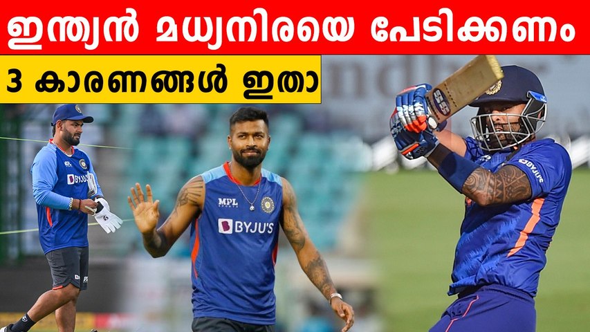 ഇന്ത്യയുടെ മധ്യനിരയിലെ താരങ്ങളെ നോക്കിയാല് എല്ലാവരും വലിയ ഷോട്ടുകള് കളിക്കാന് കെല്പ്പുള്ളവരാണ്. സൂര്യകുമാര് യാദവ്, റിഷഭ് പന്ത്, ഹര്ദിക് പാണ്ഡ്യ, രവീന്ദ്ര ജഡേജ എന്നിവരാണ് ഇന്ത്യയുടെ മധ്യനിരയിലെ പ്രധാന താരങ്ങള്. ഇവരെല്ലാം വെടിക്കെട്ട് ശൈലിയുള്ളവരാണ്. എതിരാളികളെ മാനസികമായി സമ്മര്ദ്ദത്തിലാക്കുന്ന വെടിക്കെട്ട് ബാറ്റിങ് ശൈലിയാണ് ഇവരുടേതെന്നതാണ് എടുത്തു പറയേണ്ടത്.