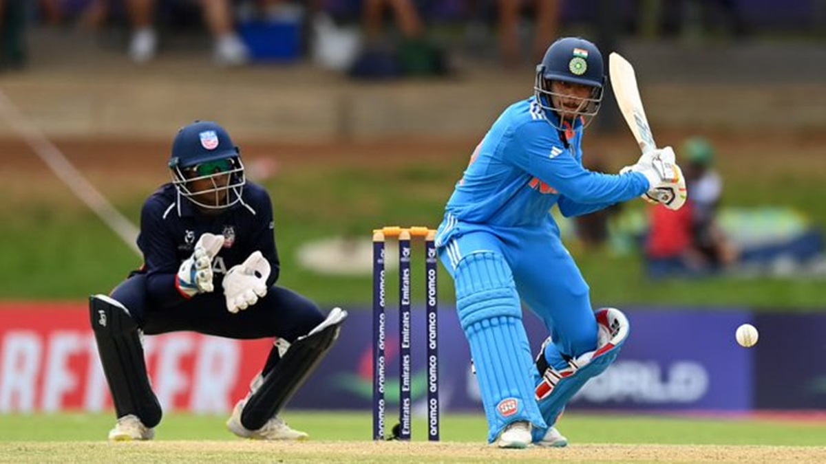 ടോസ് നഷ്ടപ്പെട്ട് ആദ്യം ബാറ്റു ചെയ്യാനിറങ്ങിയ ഇന്ത്യക്ക് ഒന്നാം വിക്കറ്റില് 146 റണ്സിന്റെ കൂട്ടുകെട്ടാണ് സൃഷ്ടിക്കാനായത്. ആദര്ശ് സിങ്ങിനെയാണ് (25) ആദ്യം നഷ്ടമായത്. രണ്ടാം വിക്കറ്റിലൊത്തുചേര്ന്ന അര്ഷിന് കുല്ക്കര്ണിയും (108) മുഷീര് ഖാനും (73) ചേര്ന്ന് 155 റണ്സിന്റെ കൂട്ടുകെട്ടോടെ ഇന്ത്യക്ക് അടിത്തറ പാകി.