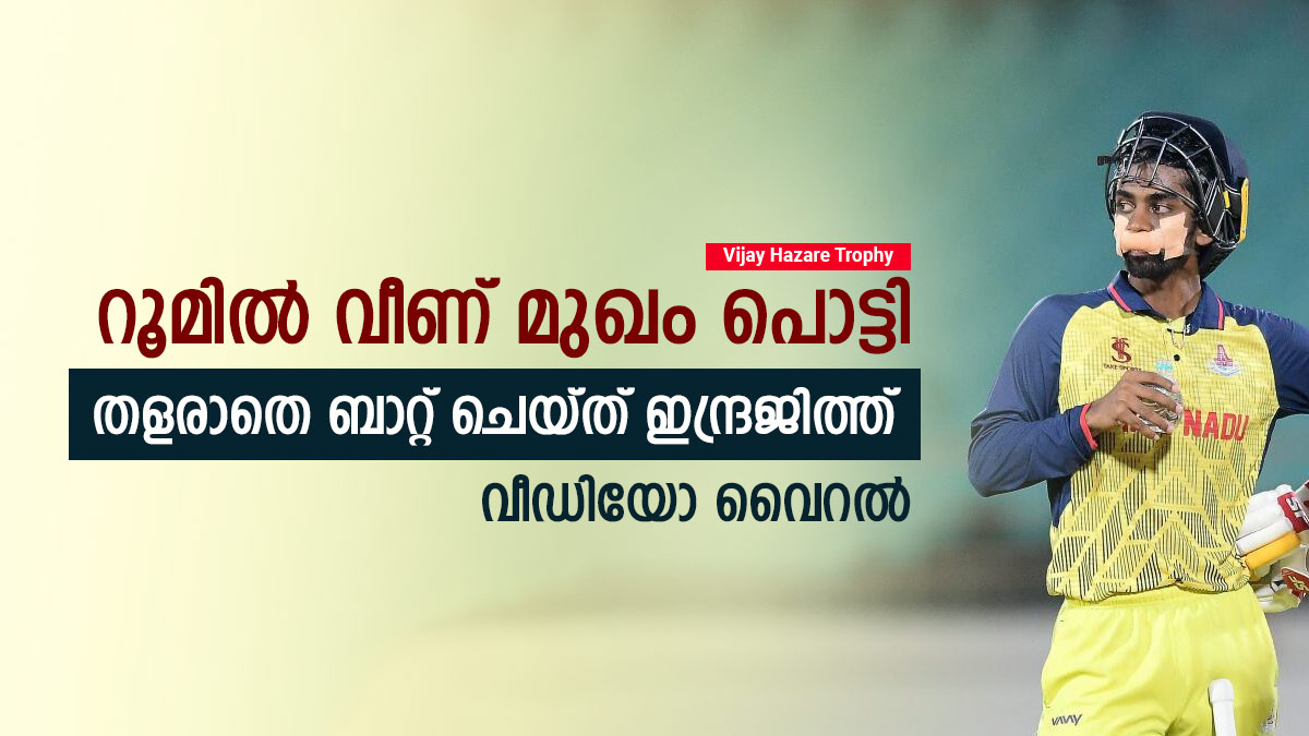 വിജയ് ഹസാരെ ട്രോഫിയിലെ ഒന്നാം സെമി ഫൈനലില് തമിഴ്നാടും ഹരിയാനയും ഏറ്റുമുട്ടുകയാണ്. ടോസ് നേടിയ ഹരിയാന ആദ്യം ബാറ്റ് ചെയ്ത് 293 റണ്സ് നേടിയപ്പോള് മറുപടിക്കിറങ്ങിയ തമിഴ്നാട് 230 റണ്സിനാണ് ഓള്ഔട്ടായത്. മത്സരത്തിനിടെ തമിഴ്നാട് താരം ബാബ ഇന്ദ്രജിത്തിന്റെ താടി ഉള്പ്പെടെ പൊട്ടുന്ന സാഹചര്യമുണ്ടായിട്ടും അദ്ദേഹം ബാറ്റുചെയ്തതിന്റെ വീഡിയോ വൈറലാവുകയാണ്. മത്സരത്തിനിടെ റൂമില് വീണതോടെയാണ് ഇന്ദ്രജിത്തിന് പരിക്കേല്ക്കുന്നത്.
