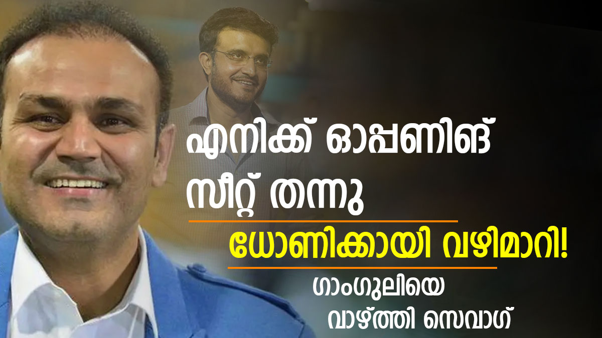 സ്വന്തം സ്ഥാനം വിട്ടുനല്കി ഗാംഗുലിയെടുത്ത ചരിത്ര തീരുമാനം സെവാഗിന്റെ കരിയര് മാറ്റിമറിച്ചു. ലോക ക്രിക്കറ്റിലെ ഏറ്റവും മികച്ച ഓപ്പണിങ് ബാറ്റ്സ്മാനായി സെവാഗ് മാറിയതിന് കാരണമായത് ഗാംഗുലിയെടുത്ത ഈ നിര്ണ്ണായക തീരുമാനമായിരുന്നു. 'സ്വന്തം സ്ഥാനം വിട്ടുനല്കി സഹതാരങ്ങളെ പിന്തുണക്കുന്ന ചുരുക്കം ചില നായകന്മാരെയെ കാണാന് സാധിക്കൂ. എനിക്കായി ഓപ്പണര് സ്ഥാനവും ധോണിക്കായി മൂന്നാം നമ്പര് സ്ഥാനവും വിട്ടുനല്കി.