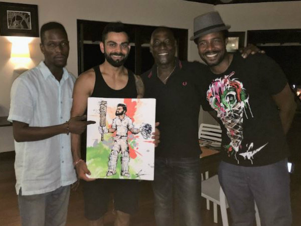 ഇതിഹാസ താരമായ വിവിയന് റിച്ചാര്ഡ്സ് ഇന്ത്യന് ടീമിന്റെ ഹോട്ടലില് സന്ദര്ശനം നടത്തിയത് കോലിയെയും ആവേശവാനാക്കി. റിച്ചാര്ഡ്സിനൊപ്പം ഒരു സെല്ഫി ക്യാപ്റ്റന് ട്വിറ്ററില് പോസ്റ്റ് ചെയ്തു. മറക്കാനാവാത്ത നിമിഷം. മഹാന്മാരില് മഹാനായ സര് വിവിയന് റിച്ചാര്ഡ്സിനൊപ്പം. അദ്ദേഹത്തിന്റെ വാക്കുകള് സ്വര്ണം പോലെയായിരുന്നു - കോലി ട്വീറ്റ് ചെയ്തു. ആന്റിഗ്വ ടെസ്റ്റില് കമന്ററി പറയാനുണ്ടായിരുന്ന വിവ് കോലിയെ അകമഴിഞ്ഞ് പ്രശംസിച്ചിരുന്നു.