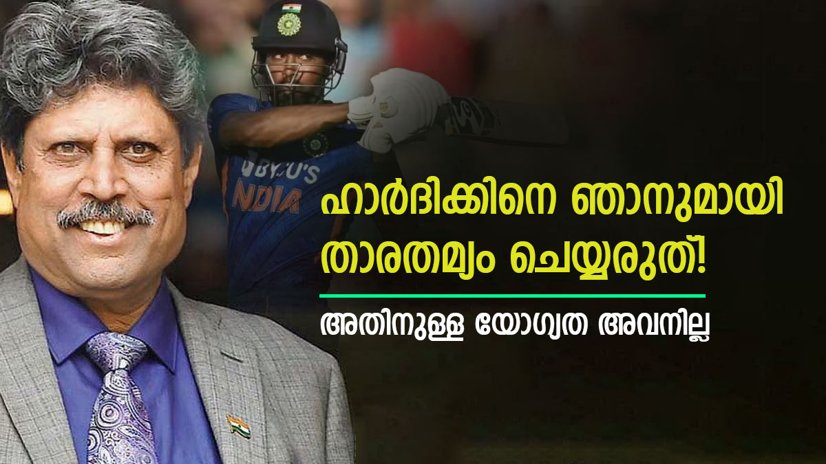 മൂന്ന് ഫോര്മാറ്റിലും ശോഭിക്കാന് കരുത്തുള്ള മിടുക്കനായ ഓള്റൗണ്ടറാണ് ഹാര്ദിക്. കപില് ദേവുമായി താരതമ്യം ചെയ്യപ്പെടുന്ന ഓള്റൗണ്ടറാണ് അദ്ദേഹം. എന്നാല് ഇപ്പോള് ഹാര്ദിക്കുമായി തന്നെ താരതമ്യം ചെയ്യേണ്ടെന്ന് ആവശ്യപ്പെട്ടിരിക്കുകയാണ് കപില് ദേവ്. അതിനുള്ള അര്ഹത ഹാര്ദിക്കിനില്ലെന്ന് പറഞ്ഞ കപില് താരത്തിന്റെ പോരായ്മകളും ചൂണ്ടിക്കാട്ടി.