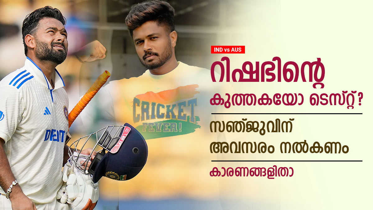 സഞ്ജുവിനെ ടെസ്റ്റിലേക്ക് പരിഗണിക്കുമെന്ന സൂചന ഗൗതം ഗംഭീര് നല്കിയിരുന്നെങ്കിലും ഇത് നടപ്പിലായിട്ടില്ല. റിഷഭിനെ വീണ്ടും ഫോമിലേക്ക് കൊണ്ടുവരാന് ശക്തനായൊരു എതിരാളി വളര്ന്നുവരേണ്ടതായുണ്ട്. ഇതിന് ഏറ്റവും അനുയോജ്യന് സഞ്ജു സാംസണാണെന്ന് പറയാം. സമീപകാലത്തായി മികച്ച ഫോമിലാണ് സഞ്ജു കളിക്കുന്നത്. ദക്ഷിണാഫ്രിക്കയില് രണ്ട് സെഞ്ച്വറിയടക്കം നേടി മിന്നിക്കാന് സഞ്ജുവിന് സാധിച്ചിരുന്നു. സെന രാജ്യത്ത് തനിക്ക് മികവ് കാട്ടാനാവുമെന്ന് നേരത്തെ തന്നെ തെളിയിച്ച സഞ്ജുവിന് വിദേശ ടെസ്റ്റ് പര്യടനങ്ങളില് അവസരം നല്കാവുന്നതാണ്.