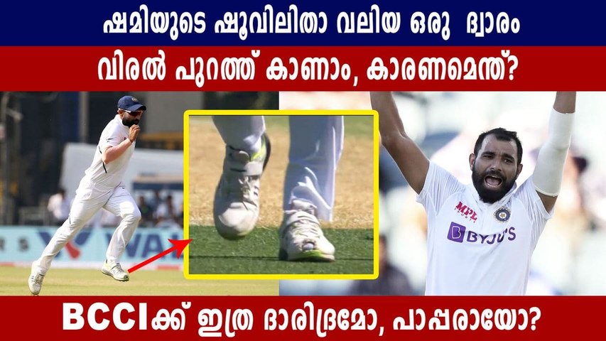 അഡ്ലെയ്ഡ്: ഓസ്ട്രേലിയക്കെതിരേ നടക്കുന്ന ഇന്ത്യയുടെ പിങ്ക് ബോള് ടെസ്റ്റിന്റെ രണ്ടാം ദിനം ക്രിക്കറ്റ് പ്രേമികളുടെ സംസാര വിഷയം പേസര് മുഹമ്മദ് ഷമിയുടെ ഷൂവിനെക്കുറിച്ചാണ്. ബൗളിങിനിടെയായിരുന്നു ക്യാമറാക്കണ്ണുകള് ഷമിയുടെ ഷൂസിലേക്കു പതിഞ്ഞത്. അദ്ദേഹത്തിന്റെ ഇടതു കാലിലെ ഷൂവിന്റെ മുന് ഭാഗത്തു തന്നെ ഒരു ദ്വാരമുള്ളതായി എല്ലാവരുടെയും ശ്രദ്ധയില്പ്പെടുകയും ചെയ്തു. ഷമിയുടെ ഒരു വിരല് ഇതിലൂടെ പുറത്തേക്കു കാണുകയും ചെയ്യാം.