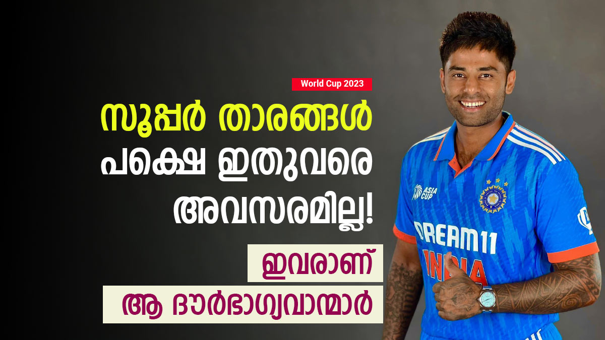 ഓസീസും ദക്ഷിണാഫ്രിക്കയും ഇംഗ്ലണ്ടുമെല്ലാം തോറ്റു. ലോകകപ്പ് ആവേശകരമായ മൂന്നാം വാരത്തിലേക്ക് കടക്കവെ ചില സൂപ്പര് താരങ്ങള് ഇപ്പോഴും ബെഞ്ചിലാണ്. ഒരു മത്സരത്തില് പോലും അവസരം ലഭിക്കാതെ ബെഞ്ചിലിരിക്കുകയാണ് ഇവര്. ഇത്തരത്തില് തഴയപ്പെട്ട് നില്ക്കുന്ന നാല് പ്രമുഖ താരങ്ങള് ആരൊക്കെയാണെന്ന് നോക്കാം. ഒന്നാമത്തെ താരം ഇന്ത്യയുടെ സൂര്യകുമാര് യാദവാണ്. വെടിക്കെട്ട് ബാറ്റ്സ്മാനായ സൂര്യകുമാറിനെ ഇന്ത്യ സഞ്ജു സാംസണെ തഴഞ്ഞാണ് ലോകകപ്പ് ടീമില് ഉള്പ്പെടുത്തിയത്.