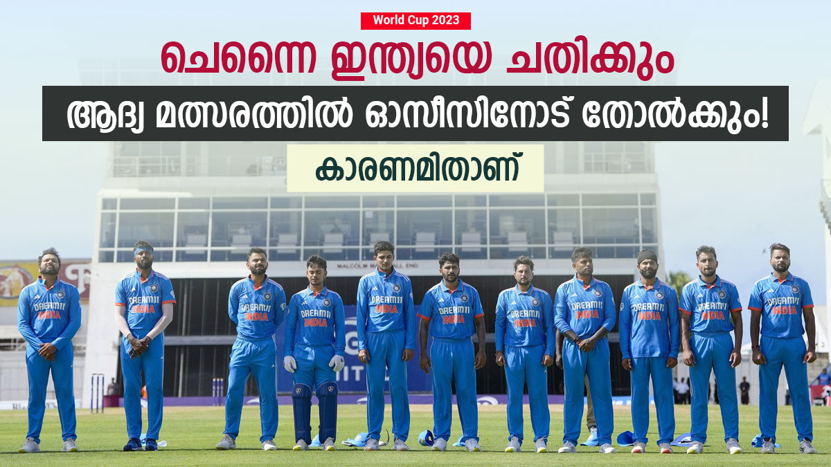 ചെന്നൈയിലാണ് ഈ മത്സരം നടക്കുന്നത്. ഓസ്ട്രേലിയക്കെതിരായ ഏകദിന പരമ്പര നേടാന് ഇന്ത്യക്ക് സാധിച്ചിട്ടുണ്ട്. അതുകൊണ്ടുതന്നെ ലോകകപ്പിലെ ആദ്യ മത്സരത്തില് ഓസ്ട്രേലിയയെ തോല്പ്പിക്കാന് ഇന്ത്യക്ക് സാധിക്കുമെന്നാണ് പൊതുവേയുള്ള വിലയിരുത്തല്. ഇത്തവണത്തെ ഇന്ത്യയുടെ ടീം കരുത്തും ശക്തമായതിനാല് കിരീട പ്രതീക്ഷകള് വാനോളമാണ്. എന്നാല് ലോകകപ്പിലെ ആദ്യ മത്സരത്തില് ഇന്ത്യ ഓസ്ട്രേലിയയോട് തോല്ക്കും.