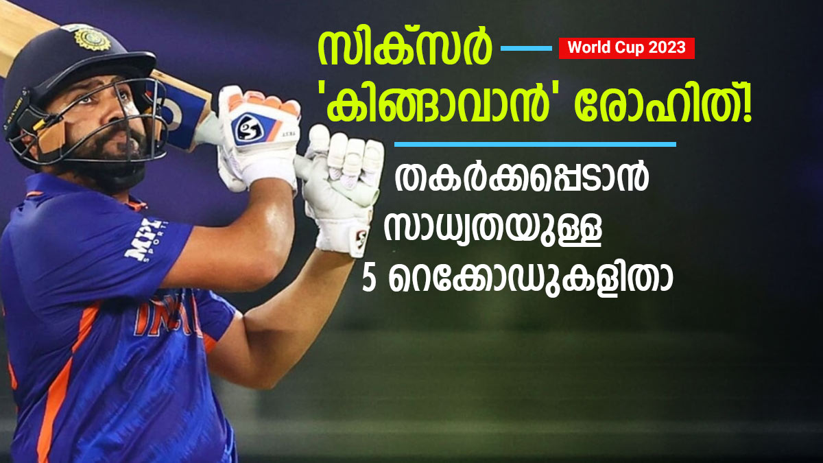 ഇക്കാരണത്താല് ആതിഥേയരെന്ന നിലയില് വലിയൊരു മുന്തൂക്കം ഇന്ത്യക്ക് അവകാശപ്പെടാനാവില്ല. എല്ലാവരും പ്രതീക്ഷയോടെ ഉറ്റുനോക്കുന്ന ഏകദിന ലോകകപ്പിലൂടെ ചില വമ്പന് റെക്കോഡുകളും തകര്ക്കപ്പെട്ടേക്കും. ഇത്തരത്തില് സൂപ്പര് താരങ്ങളെ കാത്തിരിക്കുന്ന അഞ്ച് റെക്കോഡുകള് എന്തൊക്കെയാണെന്ന് പരിശോധിക്കാം. ഇന്ത്യന് നായകനും സൂപ്പര് ഓപ്പണറുമായ രോഹിത് ശര്മയെ കാത്തിരിക്കുന്നത് സിക്സര് റെക്കോഡാണ്.