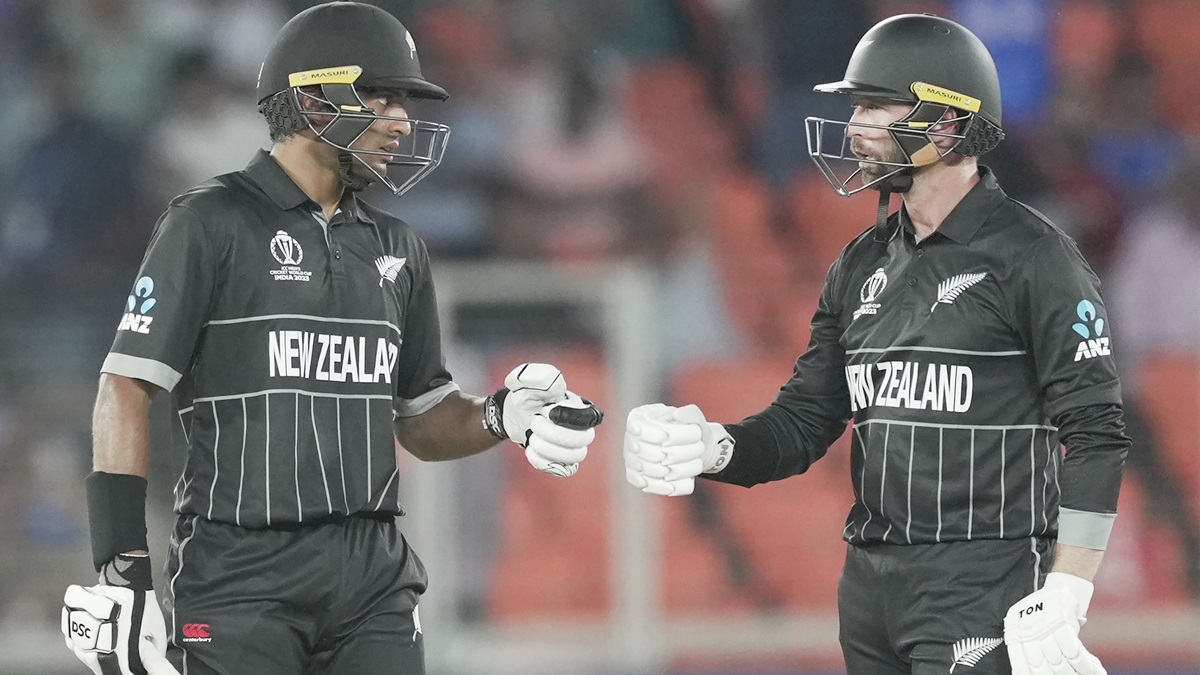 36.2 ഓവറില് ഒരു വിക്കറ്റ് മാത്രം നഷ്ടത്തില് ന്യൂസിലാന്ഡ് ലക്ഷ്യം മറികടക്കുകയും ചെയ്തു. ഓപ്പണര് ഡെവന് കോണ്വേയുടെയും (152*) കന്നി ലോകകപ്പ് കളിച്ച ഇന്ത്യന് വംശജനായ രചിന് രവീന്ദ്രയുടെയും (123*) അപരാജിത സെഞ്ച്വറികളാണ് മല്സരം ഇംഗ്ലണ്ടില് നിന്നും തട്ടിയകറ്റിയത്. കോണ്വേ 121 ബോളില് 19 ഫോറും മൂന്നു സിക്സറുമടിച്ചപ്പോള് രവീന്ദ്ര 96 ബോളില് 11 ഫോറും അഞ്ചു സിക്സറും വാരിക്കൂട്ടി.