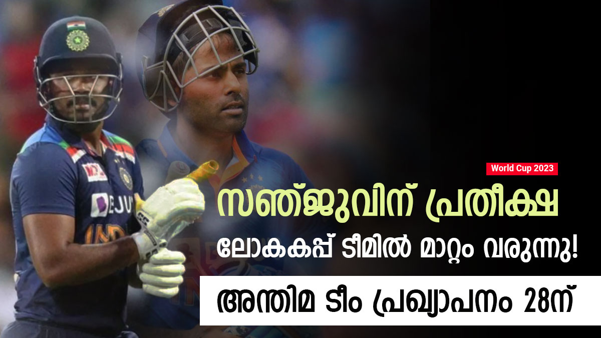 ഈ മാസം 28നാണ് ലോകകപ്പ് ടീമില് മാറ്റം വരുത്താനുള്ള അവസാന തീയ്യതി. ഏഷ്യാ കപ്പിന് ശേഷം ഓസീസ് പരമ്പരയാണ് ഇന്ത്യയെ കാത്തിരിക്കുന്നത്. മൂന്ന് മത്സരങ്ങളടങ്ങിയ ഏകദിന പരമ്പരക്ക് ശേഷം ഇന്ത്യ ആവശ്യമായ മാറ്റം ലോകകപ്പ് ടീമില് വരുത്തിയേക്കുമെന്നാണ് വിവരം. നിലവിലെ സൂചനകള് പ്രകാരം സഞ്ജു സാംസണിനെ ഇന്ത്യ ലോകകപ്പ് ടീമിലേക്ക് പരിഗണിക്കുകയും സൂര്യകുമാര് യാദവിനെ റിസര്വ് താരങ്ങളുടെ പട്ടികയിലേക്ക് മാറ്റുകയും ചെയ്തേക്കും.