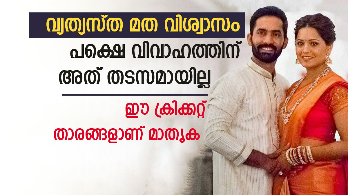 പലരും മതത്തിനും ജാതിക്കും പ്രാധാന്യം നല്കുമ്പോള് ഇതൊന്നും പരിഗണിക്കാതെ സ്നേഹത്തിന് മാത്രം പ്രാധാന്യം നല്കുകയും വിവാഹം ചെയ്യുകയും ചെയ്ത ഇന്ത്യന് ക്രിക്കറ്റ് താരങ്ങള് ആരൊക്കെയാണെന്ന് പരിശോധിക്കാം. ഇന്ത്യയുടെ വിക്കറ്റ് കീപ്പര് ബാറ്റ്സ്മാനായ ദിനേഷ് കാര്ത്തിക് വിവാഹം ചെയ്തിരിക്കുന്നത് സ്ക്വാഷ് താരവും മലയാളിയുമായ ദീപിക പള്ളിക്കലിനെയാണ്. കാര്ത്തിക് ഹിന്ദു മത വിശ്വാസിയാണെങ്കില് ദീപിക ക്രിസ്ത്യന് മതക്കാരിയാണ്.