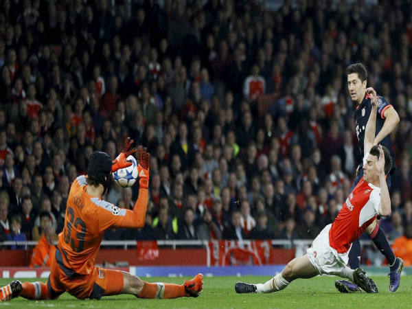 പതിനൊന്നാം മിനുട്ടില് ഡച്ച് വിംഗര് ആര്യന് റോബന്റെ തകര്പ്പന് ഗോളില് ബയേണ് മുന്നില്. 25 വാര അകലെ നിന്നുള്ള ഗോള്. മുപ്പതാം മിനുട്ടില് ആഴ്സണലിനായി ചിലി വിംഗര് അലക്സിസ് സാഞ്ചസ് സമനില ഗോള് നേടി. എവേ ഗോള് നേടിയതിന്റെ വലിയ ആനകൂല്യം കൂടി ആഴ്സണലിന്റെ പോക്കറ്റിലായി. സീസണില് സാഞ്ചസിന്റെ ഇരുപതാം ഗോള്. ആദ്യ പകുതിയില് 1-1.