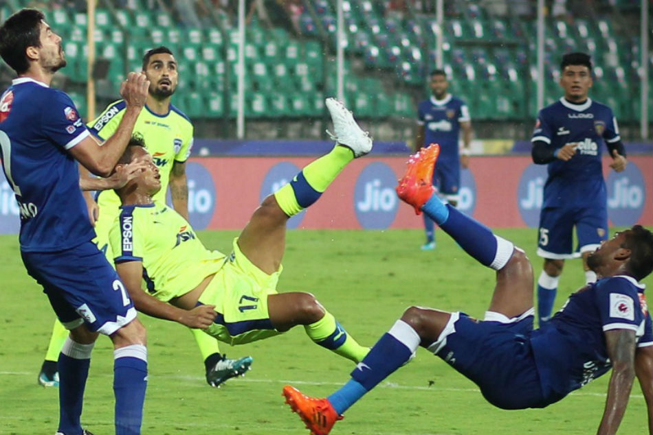 ചെന്നൈയുടെ വല കുലുക്കാന് രണ്ടു മിനിറ്റ് മാത്രമേ ബെംഗളൂരുവിനു വേണ്ടി വന്നുള്ളൂ. മല്സരമാരംഭിച്ച് രണ്ടാം മിനിറ്റില്ത്തന്നെ ഹവോകിപ്പിലൂടെ ബെംഗളൂരൂ ലീഡ് നേടി. ഫെര്ണാണ്ടസിലൂടെ ഒന്നാംപകുതിയില് തന്നെ ചെന്നൈ ഗോള് മടക്കിയെങ്കിലും രണ്ടാംപകുതിയില് ബെംഗളൂരു ശക്തമായി തിരിച്ചുവന്നു. 63ാം മിനിറ്റില് മിക്കുവിലൂടെ ലീഡ് തിരിച്ചുപിടിച്ച ബെംഗളൂരു ഇഞ്ചുറിടൈമില് ചെന്നൈയുടെ നാണക്കേട് പൂര്ത്തിയാക്കി ഛേത്രിയിലൂടെ മൂന്നാം ഗോളും നേടി. മല്സരഫലം സൂചിപ്പിക്കുന്നതുപോലെ ഏരപക്ഷീയമായിരുന്നില്ല ബെംഗളൂരുവിന്റെ വിജയം. കളിയുടെ ഭൂരിഭാഗവും ചെന്നൈക്ക് തന്നെയായിരുന്നു മേല്ക്കൈ. എന്നാല് മിക്കുവിലൂടെ ബെംഗളൂരു ലീഡ് നേടിയതോടെ ചെന്നൈയുടെ കൈയില് നിന്നും കളി വഴുതിപ്പോവുകയായിരുന്നു.