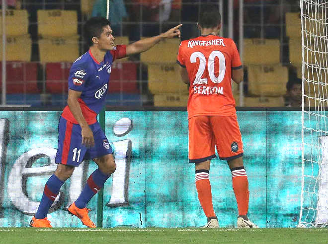 72ാം മിനിറ്റില് ബ്രന്ഡനിലൂടെ ഗോവ ഗോള് മടക്കി. രണ്ടു ഡിഫന്ഡര്മാരെ കബളിപ്പിച്ച് കോറോ നല്കിയ പാസ് ബോക്സിനുള്ളില് നിന്നും ക്ലോസ് റേഞ്ച് ഷോട്ടിലൂടെ ബ്രന്ഡന് വലയ്ക്കുള്ളിലാക്കി. എന്നാല് അഞ്ചു മിനിറ്റിനകം ഛേത്രിയുടെ സൂപ്പര് ഗോളില് ബെംഗളൂരു വിജയമുറപ്പിച്ചു. വലതു പാര്ശ്വത്തില് നിന്നും ഉദാന്ത സിങ് ബോക്സിനുള്ളിലേക്ക് അളന്നു മുറിച്ചു നല്കിയ മനോഹരമായ ക്രോസ് മാര്ക്ക് ചെയ്യപ്പെടാതെ നിന്ന ഛേത്രി ഡൈവിങ് ഹെഡ്ഡറിലൂടെ വലയ്ക്കുള്ളിലേക്കു തൊടുത്തപ്പോള് ഗോളി നിസ്സഹായനായിരുന്നു.