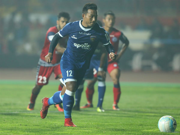 ഒന്നാം പകുതി തീരാന് നാലു മിനിറ്റ് ബാക്കിയുള്ളപ്പോള് കളിയുടെ ഗതിക്കു വിപരീതമായി ചെന്നൈ അക്കൗണ്ട് തുറന്നു. ബോക്സിനുള്ളില് വച്ച് മെഹ്താബ് പന്ത് കൈകൊണ്ട് തടുത്തതാണ് പെനല്റ്റിക്കു വഴിവച്ചത്. സീസണില് ടീമിന്റെ ടോപ്സ്കോററായ ജെജെ പെനല്റ്റി അനായാസം ലക്ഷ്യത്തിലെത്തിച്ചതോടെ ചെന്നൈ ലീഡ് കരസ്ഥമാക്കി.