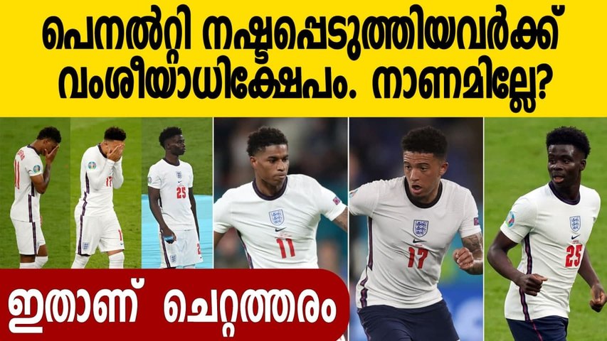 യൂറോ കപ്പിന്റെ ഫൈനലില് ഇറ്റലിക്കെതിരേ പെനല്റ്റി നഷ്ടപ്പെടുത്തിയ ഇംഗ്ലണ്ട് ടീമിലെ കറുത്ത വര്ഗക്കാരായ കളിക്കാര്ക്കു നേരെ വംശീയാധിക്ഷേപം. സമൂഹമാധ്യമങ്ങള് വഴിയാണ് മാര്ക്കസ് റഷ്ഫോര്ഡ്, ജാഡന് സാഞ്ചോ, ബുക്കായോ സാക്ക എന്നിവരെ വര്ണവെറിയന്മാര് ആക്രമിച്ചത്. ഇതിനെതിരേ ശക്തമായ വിമര്ശനങ്ങളും ഉയരുന്നുണ്ട്. ഇംഗ്ലീഷ് ടീം കോച്ച് ഗരെത് സൗത്ത്ഗേറ്റ്, ക്യാപ്റ്റന് ഹാരി കെയ്ന്, കായിക താരങ്ങള്, രാഷ്ട്രീയ, മതനേതാക്കള് എന്നിവരടക്കം പല മേഖലകളിലുള്ളളവരും അപലപിച്ചു. കളിക്കാരെ വംശീയമായി അധിക്ഷേപിച്ചവരെക്കുറിച്ചുള്ള വിവരങ്ങള് എത്രയും പെട്ടെന്നു കൈമാറാന് ബ്രിട്ടീഷ് മന്ത്രിമാര് സോഷ്യല് മീഡിയ കമ്പനികളോട് ആവശ്യപ്പെടുമെന്നാണ് വിവരം.