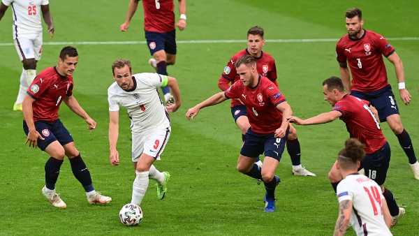 ചെക്കിനെതിരേ കളിയാരംഭിച്ച് രണ്ടാം മിനിറ്റില്ത്തന്നെ ഇംഗ്ലണ്ട് മുന്നില് എത്തേണ്ടതായിരുന്നു. പക്ഷെ സ്റ്റെര്ഡലിങിന്റെ ഗോള്ശ്രമം പോസ്റ്റില് തട്ടിത്തെറിക്കുകയായിരുന്നു. 10ാം മിനിറ്റില് സ്റ്റെര്ലിങ് ഇംഗ്ലണ്ടിന്റെ അക്കൗണ്ട് തുറന്നു. ജാക്ക് ഗ്രെലിഷ് നല്കിയ ക്രോസ് സ്റ്റെര്ലിങ് വലയിലേക്കു വഴി തിരിച്ചുവിടുകയായിരുന്നു. 26ാ മിനിറ്റില് ഇംഗ്ലണ്ട് സൂപ്പര് താരം ഹാരി കെയ്നിന്റെ നല്ലൊരു ഗോള് ശ്രമം ചെക്ക് ഗോളി വാക്ലിച്ച് രക്ഷപ്പെടുത്തി. രണ്ടു മിനിറ്റിനകം ചെക്കിന്റെ കൗണ്ടര് അറ്റാക്ക്. എന്നാല് സാക്കയുടെ ഗോള് ലക്ഷ്യമാക്കിയുള്ള ഷോട്ട് ഗോളി പിക്ഫോര്ഡ് കുത്തിയകറ്റി.